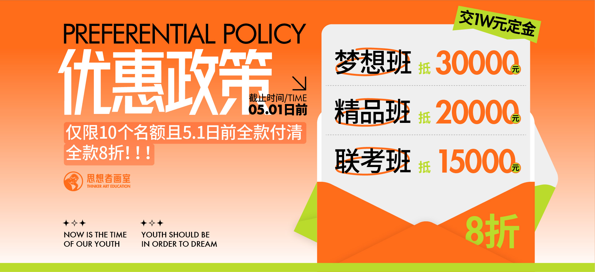 梦想名师班是思想者配置最高的王牌班型,是清央精品班的升级版本,专为立志报考清华、央美等顶级院校的学霸量身打造。